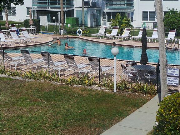 Location of this unit is first rate. There's a great pool view from the enclosed lanai of this 2nd Bayshore, 55+Condominium. No stone was left unturned on the inside of this beautiful condo. Double pane windows, ceramic tile through all the living areas just carpet in the bedroom. Updated doors and trim, glass top range, updated kitchen cabinets, updated bathroom vanity. Lowest fees in town,...ONLY $115 a month. Association is well run and has a younger feeling to it. Lots of fun being had in the courtyard by shuffle-boarders and swimmers. Stop in to the office for some coffee or a doughnut or just sit and watch the activities.