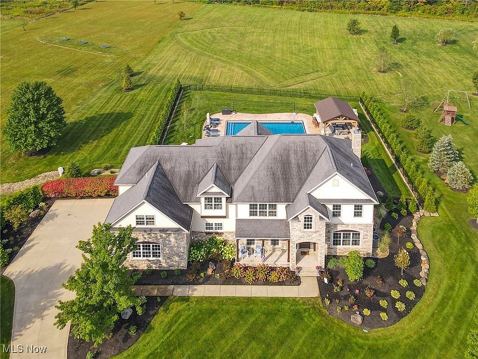 Welcome to this beautifully updated and meticulously maintained home in the highly desirable Amber Trails development.Situated on 2.5 acres in Bainbridge,this home showcases true pride of ownership.Step into the spacious foyer featuring wide-planked hard-wood floors and classic wainscoting.Just off the foyer,you'll find a formal dining room with tray ceiling,a private office, and an updated powder room.The two-story great room is ideal for entertaining,with a dramatic wall of windows,stone-front gas fireplace, custom built-ins,and a bar with wine refrigerator.The remodeled gourmet kitchen is sure to impress any chef,featuring a Wolf oven,steam oven and gas cooktop as well as a Sub-Zero refrigerator.A center island,Calcutta quartz countertops, and custom tile back-splash provide both elegance and efficiency.The cozy breakfast nook offers an unparalleled view of the beautiful back yard and pool area.A conveniently located service area includes a walk-in pantry,laundry room,2nd updated guest bath and a mudroom with cubbies and convenient access to the patio and pool areas as well as the 3 car garage. Upstairs you'll find 4 large bedrooms, each with bath access.The luxurious primary suite features a large sitting room,dual walk-in closets,a well appointed ensuite bath and a private screened in porch.Head down to the finished lower level where you'll find a recreation room,media area,full bath,bar and 500 bottle wine cellar.The true showstopper is the entertainment-ready outdoor space featuring an expansive stone patio,20x40 heated pool,gas firepit,and hot tub.The custom built pool pavilion is fully equipped with a granite topped bar, outdoor refrigerator, outdoor tv, gas grill, and a gas fireplace and heater-perfect for hosting all season long.This luxurious home blends timeless charm with state-of-the-art upgrades.With over $300k in renovations since 2022 it is not to be missed!Kenston Schools,Geauga taxes and no RITA.See supplements for full list of upgrades.