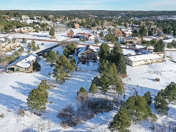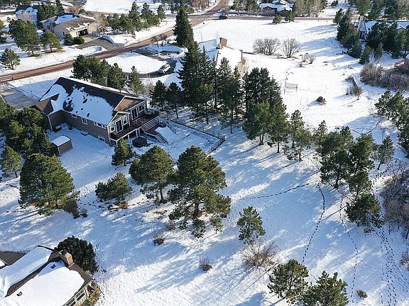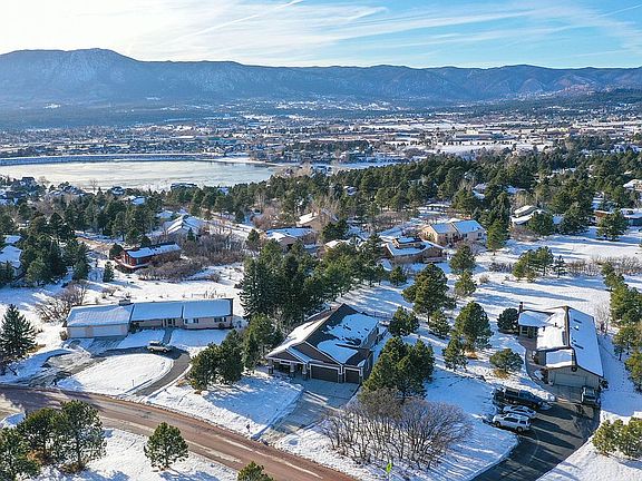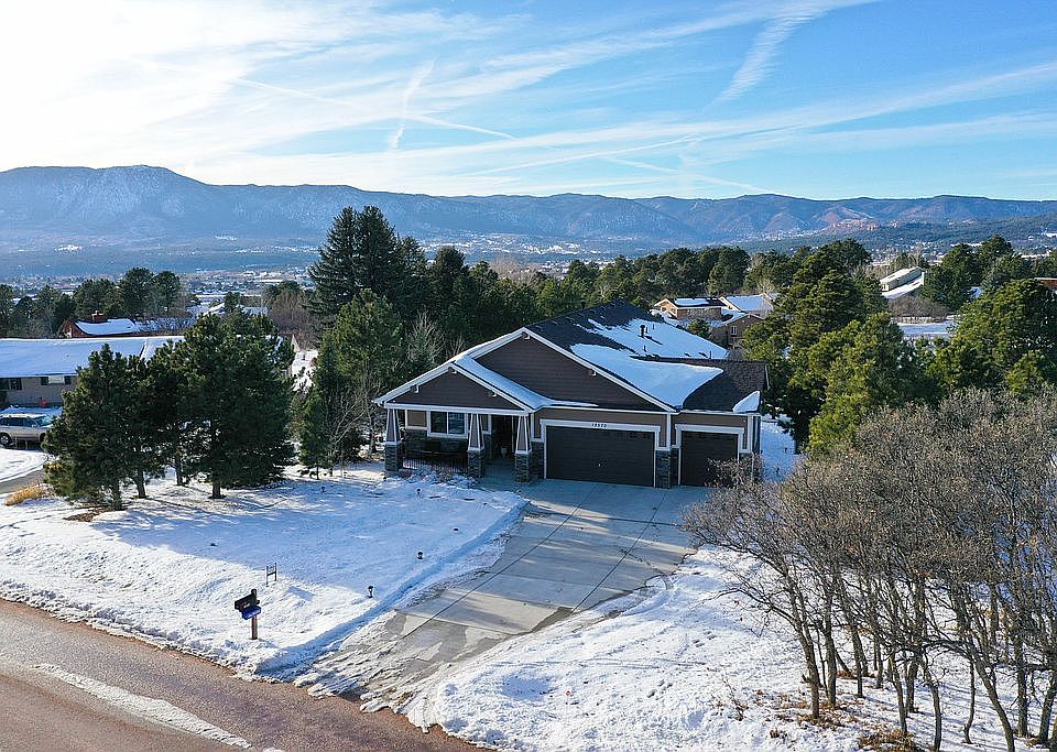Custom Rancher in highly sought after Woodmoor neighborhood - over 3/4 acre lot w/view of Pikes Peak & Mt. Herman. Thoughtful design w/office, guest bedroom and 3/4 bath at front of house & master suite at rear w/kitchen/dining/living in between for perfect entertaining area. Two additional bedrooms, 3/4 bath, huge family/great room & exercise or theater room in garden level basement. Fresh paint throughout the entire house, beautiful & durable tile floor on the main level, NEW, professionally painted kitchen cabinets, pulls & backsplash. NEW shiplap wall in dining room & on kitchen island, NEW light fixtures in kitchen, dining room & living room, NEW wood beams on living room ceiling. The gourmet kitchen features an oversized island w/ beautiful granite & plenty of seating space, a double oven, pantry & tons of cabinet space. Kitchen is open to the dining room - complete w/an amazing view of Pikes Peak - & living room that opens to the deck & back yard. Enjoy sunsets over the mountains from the large deck & then retreat into the hot tub for some R&R. Back yard is fully fenced, however, don't be surprised to see the deer wander through. Raised garden beds are ready for your gardening pleasure & the detached shed provides added storage space. If it's too chilly to enjoy the outdoor space, the basement is there with a great room that includes a wet bar, beverage cooler and refrigerator & a separate room - currently used as an exercise room but could also be a media room, AND it's light and bright because it's a garden level basement. Additional convenience features include 2 hot water heaters so everyone is comfortable & 2 laundry areas - one on the main level in it's own room off the garage, & one in the basement. 3-car garage at the front of the house meets your parking needs & wide driveway offers flexibility for play &/or easy turn around. This unique home is close to town & offers peace & quiet - it really has it all.