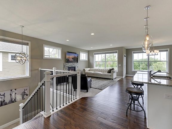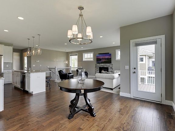 Come see this Custom Built Walk-out rambler featuring: gourmet kitchen w/ custom cabinets and entertainment-sized center island, upgraded appliances, granite countertops & deco backsplash. Oversized Great Room w/ windows galore, custom fireplace, HDWD floors on the main level & lavish Owner's Suite w/ large walk-in closet. O'sized deck o'looking yard with incredible views, walk-out lower lvl, walking distance to shops, paths, & restaurants. Only minutes from 1-35.