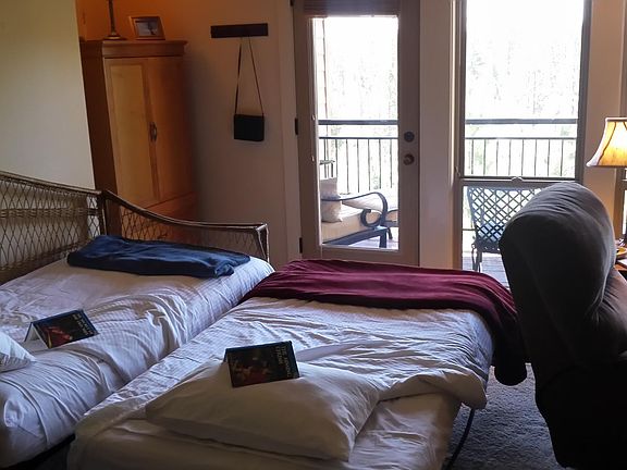 King size bed in the bedroom and a queen size sofa sleeper in the living room, both with memory foam pads for extreme comfort. Queen sofa sleeper in living room. Trundle converts to two twin beds in living room. A recliner in the living room for an easy viewing of the 52-inch flat screen television. DVD player and DVDs. Fluffy white towels, superior thread count bed linens, assorted pillows and comforters for you. Hair Dryer. Iron and ironing board. The kitchen is fully stocked. Blender, toaster, larger fridge, convection oven/microwave.