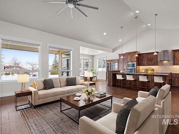 Discover this highly sought-after single-level home in the picturesque Avimor community, just a short walk from local amenities such as coffee shop, a brewery/restaurant, community center, ponds, and scenic trails. Enjoy breathtaking views of the Boise foothills and the added privacy of no rear neighbors. This home features an open kitchen, living, and dining area, along with a spacious north-facing backyard patio perfect for entertaining. Numerous upgrades including a large kitchen island, under-sink RO system, auxiliary generator, exterior lighting, and garage shelving, this home provides both comfort and convenience. Avimor offers over 100 miles of trails, tennis and pickleball courts, several parks, a bike track, paved walking paths, and Idaho Novus Academy—making it truly unique. Come experience tranquility in the foothills today!