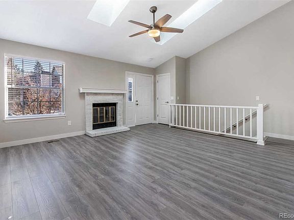 Welcome, Home. Completely remodeled 4 bedrooms and 3 bathrooms townhome. An open floor plan leads to a modern kitchen with quartz countertop, glass tile backsplash, and updated/new kitchen appliances. The living room features a vaulted ceiling with skylights and a rare wood-burning fireplace to relax on snowy days. Absolutely beautiful master bathroom with designer tile, frameless shower glass door, and a quality vanity. Large outdoor patio for entertaining. The basement features a large living space, a bedroom, and a laundry room. Plenty of storage. 2 deeded parking spots right in front of the unit. Cherry Creek school district. Close to schools, parks, playgrounds, trails!