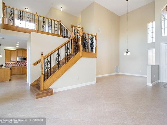 Looking for a spotless home? Look no further. This home is impeccable from top to bottom. Gorgeous kitchen with all the upgrades including granite countertops, stainless steel appliances, center island and snack bar. Lower level has beautiful tile flooring, upper level and stairs gorgeous wood laminate throughout. Handrail is upgraded with wrought iron. Backyard is expansive with a spectacular view of the lake. Master and second mini master on first floor. 2nd floor has 3 large bedrooms plus a large open loft.