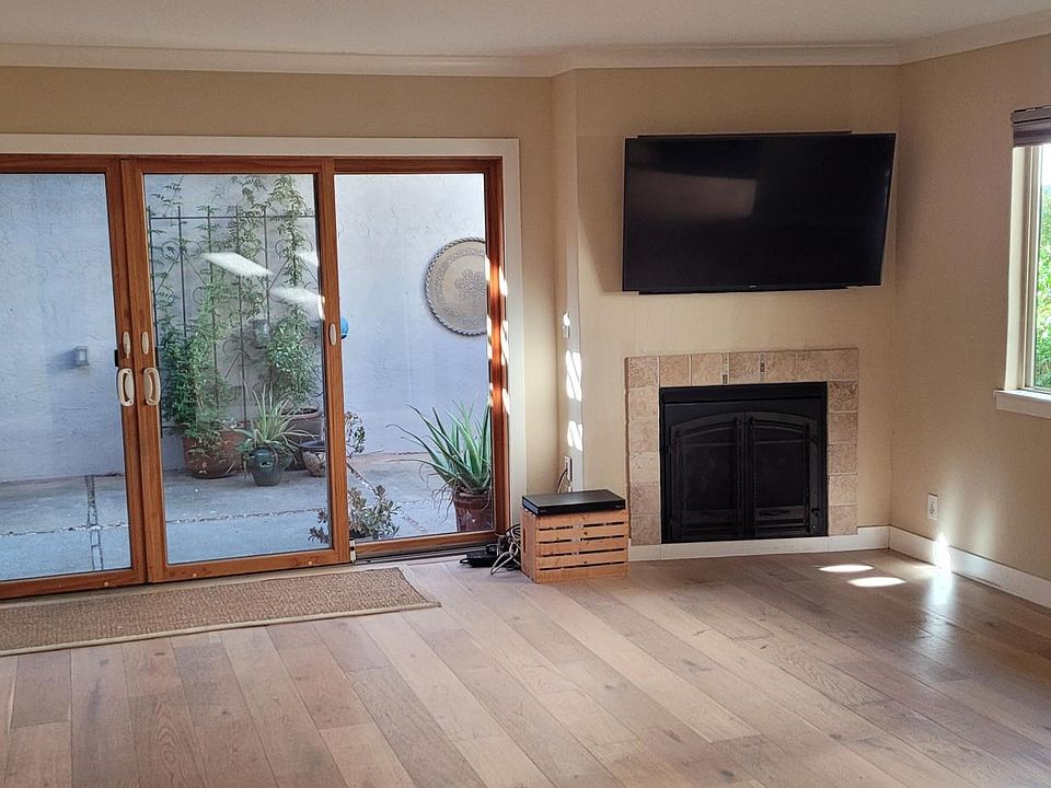 Rented for the first time by owner! Lovingly updated 2-bedroom, 1.5-bath, one-story, end-unit townhome in beautiful and serene Skywest community. Half bath with custom vanity. Full-size interior laundry hookups. Cozy gas fireplace. Wide plank wood floor. Private patio. 2-car garage. Newer central A/C unit. Dual-pane windows. View of trees behind - private, quiet, and beautiful. The Skywest neighborhood includes a pool, greenbelts, tennis courts, clubhouse, and even secure RV/boat parking. Located in Walnut Creek on the Lafayette/Pleasant Hill border, 2 miles from 3 BART stations. 12 month lease. Water included. Renter responsible for all other utilities and trash. Small pets permitted with pet deposit. No smoking.