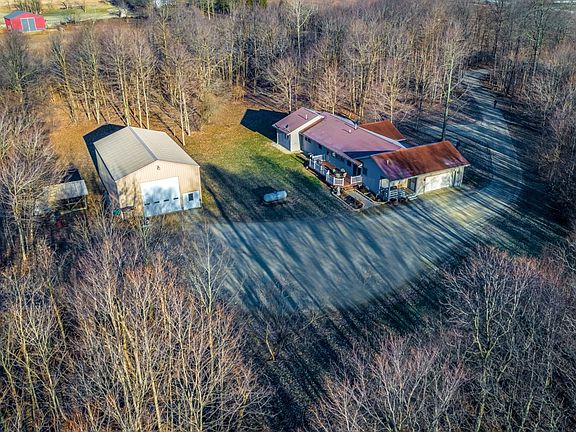 Here's the opportunity you've been patiently waiting for - built in the late 1990's in the peaceful setting of 7 wooded acres, this spacious ranch home features 3 large bedrooms and 2.5 bathrooms. 2 family rooms, kitchen with cherry cabinets and island, master bedroom with attached office, walk-in closet and stand up shower. Attached garage, 30'X48' pole building with concrete floor and large overhead door. Priced at $239,900!