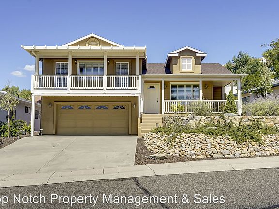 FABULOUS 2 BEDROOM + HOBBY ROOM/DEN - CLIFF ROSE - VIEWS - Great home in Cliff Rose, centrally located within 10 minutes of downtown Prescott, near the Adult Center of Prescott and shopping. Fabulous views!! You can see the quality of the home when you enter into a large living room with entertainment center, ceiling fan and gas fireplace as a center piece. Kitchen with all appliances, lots of cabinets and counter space and overlooks eat in kitchen with exit to rear yard and covered patio. The upper level has nice sized master suite with large walk in closet. Master bath has separate garden tub and shower, and dual vanities. Large 2nd bedroom with private deck with views, 2 closets and ceiling fans could serve as a possible master suite with the hall bathroom, there are doors to close off at hallway. 3rd room could be a bedroom with no closet, hobby room or office space has carpet. Over-sized 2 car garage with opener. Laundry with washer & dryer in garage. Plank flooring and tile mostly throughout except 3rd room. Heating & Cooling: Central A/C, ceiling fans and central gas heat Appliances: Refrigerator, dishwasher, disposal, gas stove, and built in microwave, washer & dryer. Utilities: All paid by tenant Electric - APS Gas - Unisource Water, sewer & trash - City of Prescott Terms: Year lease No Smoking Pet Negotiable No College Students Call Top Notch at 928-772-4801 to view this lovely home. All information is deemed reliable but not guaranteed. (RLNE4257092)