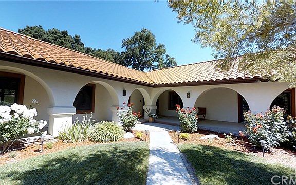 Absolutely fantastic home with guest house and pool on 2 acres in west Templeton. The owner says..."This house is like home." You'll feel the same way when you enter the gate of this elegant Spanish estate. Located at the end of a quiet cul-de-sac, this custom home offers 5 bedrooms, 4 bathrooms, gourmet kitchen, and formal living and family rooms (each with it's own fireplace). Rough-hewn Douglas Fir beams accent the dramatic ceilings of the living areas. The main living area of the home is all on one story and downstairs is the wonderful bonus room with it's attached bedroom and bathroom. The perfect office, media room, play room, etc. The guest house offers 1 bdrm and 1 bathroom as well as a great living area/kitchen combination. And then there's the pool. Beautifully set among the trees, it has a built in spa and electric cover. All of this is on 2 west Templeton acres that are fenced and perfect for your animals or just enjoying the "elbow room." Many producing fruit trees are just about ready to pick! Plenty of paved parking for your RVs and vehicles. And there are two 2-car garages! The property is connected to TCSD water and it also has it's own well for irrigation. Truly a property not to be missed!