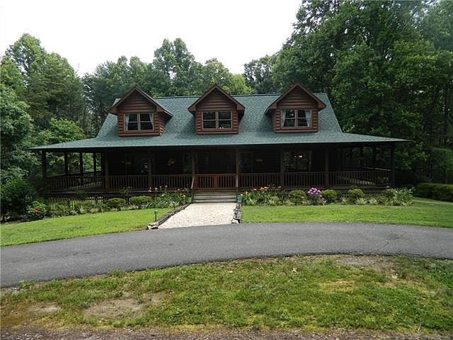 Secluded horse ranch only minutes from Morganton and Lenoir. Immaculate 3BR, 3.5 BA log home situated on 16.78 acres with a 36'X60' barn and fenced pasture. The children and pets will enjoy the level fenced in backyard. Abundant wildlife can be viewed from the covered wraparound porch and rear deck. Inside you will be treated to tongue and groove cathedral ceilings, 2 story see through rock fireplace and hardwood floors. The large kitchen is open to both the den and dining room. Master suite has a custom walk in shower and 2 walk in closets. Upper level has 2 huge bedrooms and an office. The basement features a family/rec room, full bath, 3 storage rooms and a 1 car garage. The roof was installed in 2018, furnace and A/C 2017, Rinnai hot water heater 2016. A circle driveway leads to the front of the house with an extra large 2 vehicle carport. The well maintained barn has 7 stalls, concrete floor, tack room, workshop with hot and cold water, hay loft and separate 200 amp service.
