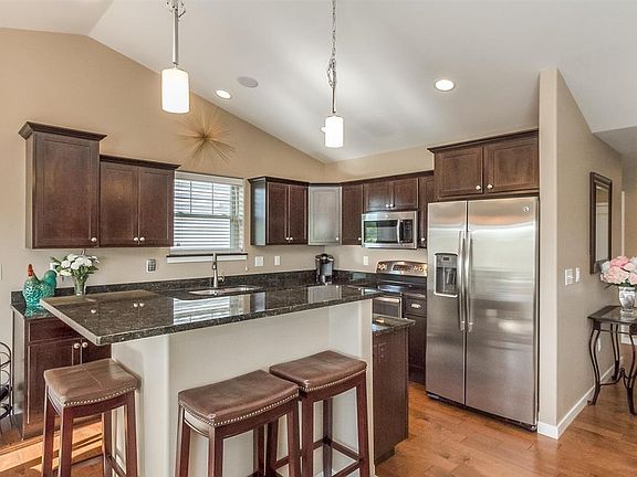 Shows just like new! This immaculately kept 4 bedroom, 3 bath ranch home is in perfect condition & features an open kitchen concept w/granite counters & stainless steel appl, raised bar and hardwood floors in the kitchen & dining rm. Don't miss the first floor laundry! The open stairway leads to a walkout LL, spacious family rm & plenty of storage! Enjoy coffee on the recently stained deck w/steps down to patio overlooking the private pond all on a well landscaped yard! Audio system on the main floor