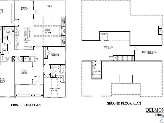 Spectacular Belmont main-level living plan. Welcoming formal dining room with coffered ceiling. The bright family room features a fireplace and is open to the kitchen. Gourmet kitchen fit for a chef features a large island, ample cabinetry, plenty of countertop space, large corner walk-in pantry, and a perfectly situated breakfast area that leads to the patio. A full laundry room and all bedrooms are on the main level of this plan. The owner's suite features plenty of natural light, trey ceiling, and a spa-inspired bathroom. The owner's bathroom showcases dual vanities, a soaking tub, and a separate shower. The owner's suite is finished off with a double walk through closet! Upstairs is a loft/flex space and full bath.