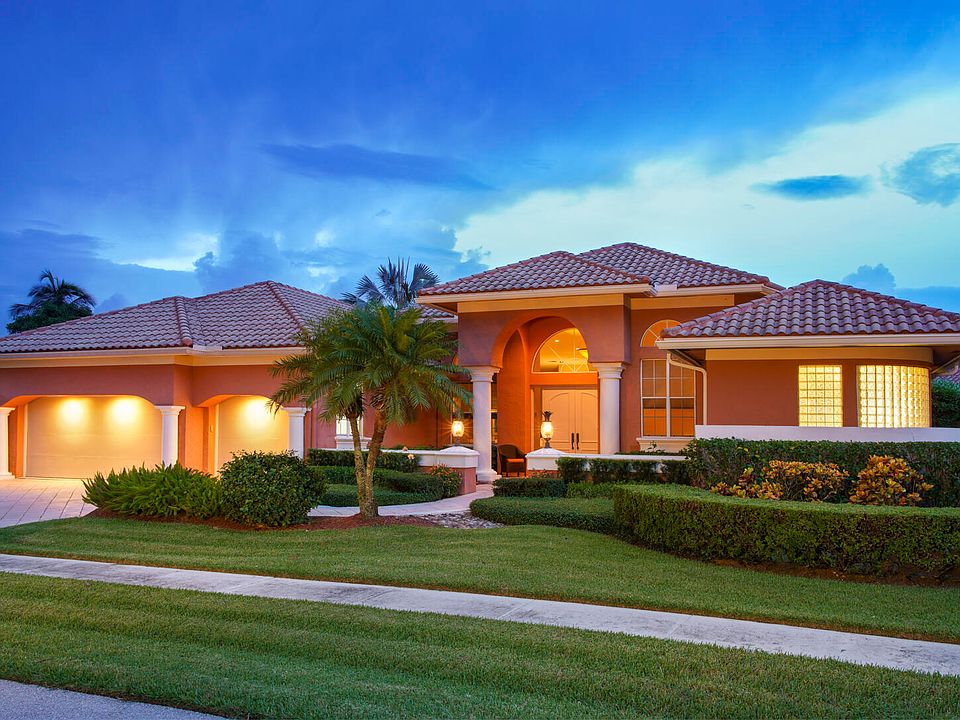 Step into this beautiful spacious estate home with soaring 14' ceilings throughout the main living area. There's lots of light pouring in through clerestory windows with an East/West exposure. This home is on a spacious private corner lot with lush tropical landscaping and mature trees. The flowing open split floor plan and patio create the perfect space for entertaining indoors and out. Each bedroom has its own ensuite bath and walk-in closet. The master bedroom suite features a multilevel tray ceiling, wood floor and his/her built-in closets. Enjoy a spa inspired updated master bath with a soaking tub and a large 5'x9' area with a multihead shower experience. The new buyer will enjoy the Italian lighting from Artemide and Foscarini. The community wraps around the 45 acre pristine Lake Camino with a walking/jogging path, 2 tennis courts and/or 2 pickleball courts. Has the highest rated schools and is walking distance to famed Sugar Sand Park. This is a must see opportunity to live in South East Boca Raton. Upgrades: Beautiful custom backyard evening garden lighting. 2022 (3 zone) new A/C units with service contract, new water heater, new tankless water heater in master, new gutters, pool resurfaced with shimmering glass tile.