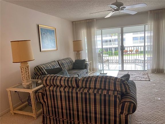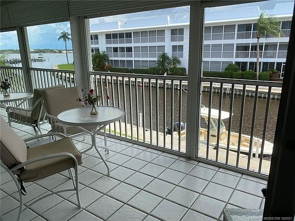 2nd floor 2 bedroom/2 bathroom fully furnished condo with amazing canal and river views. The unit has tile and carpet flooring, screened patio that overlooks the canal/river and is accessible from both main living area and master bedroom. The unit also has a boat slip that will fit up to a 35' boat. Windjammer is an active 55+ community with marina, 3 pools (1 is heated), clubhouse and manager on site. Windjammer is less than 1 mile to downtown Stuart and 5 miles to beaches. Great location. Owner desires a 4 month rental but may consider 3. Call listing agent for showings.