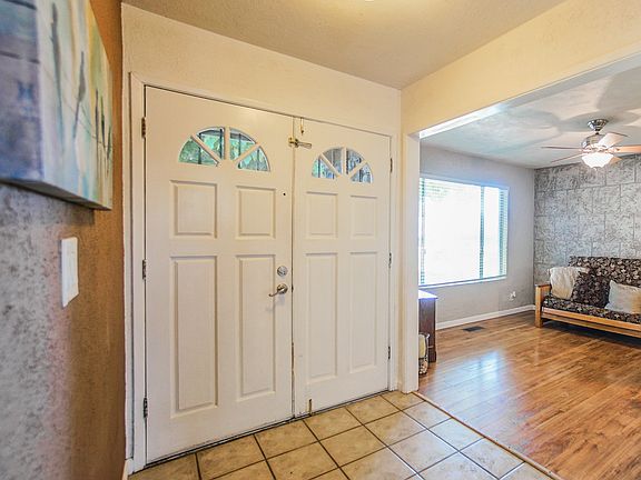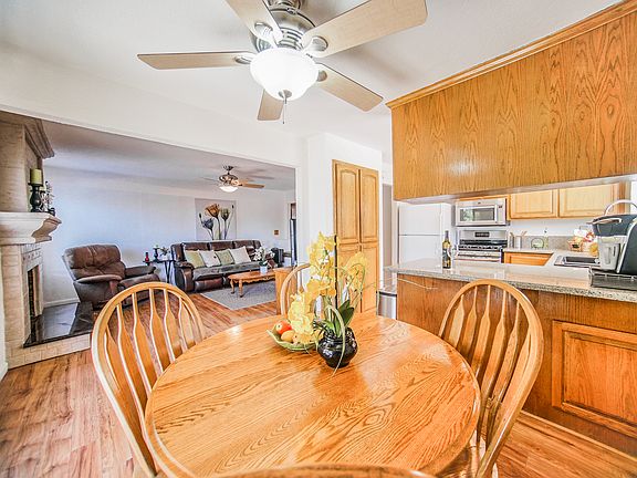 Easy, low-maintenance curb appeal! Arrive home & you're greeted with a retaining wall under the shade tree & a grey stone entry way. Welcomed with a den/office, then you continue into the cozy family room. This living room features a custom designed wood burning FP hearth that is detailed with a slab of Labrador Antique granite that glistens in the light. The beautiful kitchen offers nutmeg Quartz Countertops, granite double sink w/ an upgraded faucet, & matching S.S. appliances, including a microwave and a Frigidaire 5 burner stove. The back yard has low maintenance landscaping and covered patio with roll down shade screens! Open the back gate to discover additional yard space, and enjoy the sunset on your deck while you envy your own fruit trees and the neighbors beautiful vineyard. The fruit trees include kumquats, lemons, blood oranges, Santa Rosa plums, peaches, and pomegranates. 500-gallon water holding barrel for gardening. New HVAC system. Extended driveway and storage sheds.