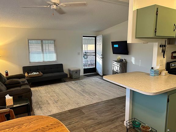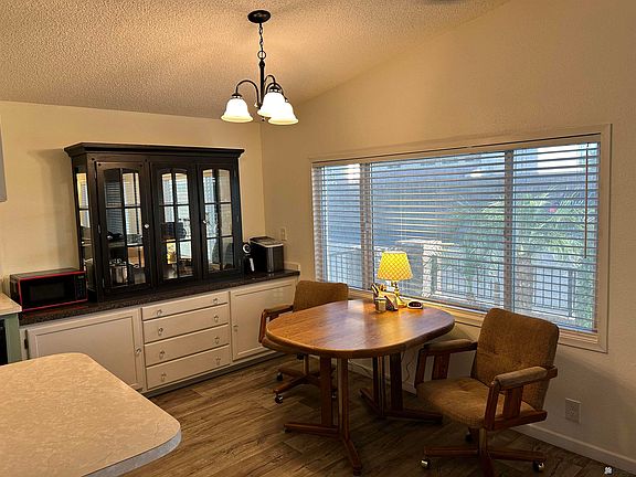 A 55+ Community! So NICE, NEAT & CLEAN!! 2 Bedroom 2 (3/4) Bath DOUBLEWIDE. Updated Remodel. Newer Vinyl Flooring thru-out, Sheetrock walls, New WHITE Paint on walls & ceiling, Vaulted ceilings in Living, Dining & Kitchen! New Stove 2020, Washer/Dryer 2022, 2 Refrig. 2020 & 2021 (1 in the Kitchen & 1 in the Workshop), CARRIER A/C in 2023, Water Softener 2018. RO System. RV parking w/Hook-Ups (power, sewer & water). PET FRIENDLY w/fenced & gated yard. LOTS of Sunshades for Patio, Carport & Windows. Patio Water Feature, Grape Vines, Grapefuit tree & Pigmy Palms all on auto Water system. Under Pest Control Service. YOU OWN THE LOT HERE! HOA Dues is only $524. per year!! Primary Bedroom w/French Door to Patio, Walk-In Closet, Remodeled Walk-in Shower, Tall vanities in both Baths. Active Clubhouse w/POOL & Activities, Game Room & Shuffleboard. Close to Shopping & Medical facilities. HURRY....This is Beautiful!!