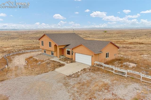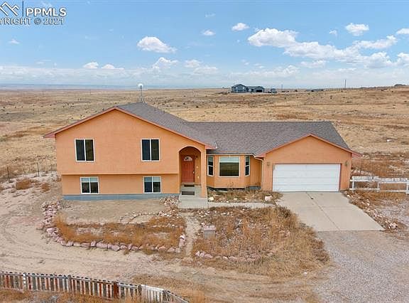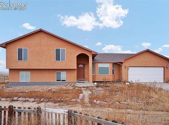 Bring on the TLC and make your "Colorado Ranch Living" dream come true! Nearly 2800sf Stucco home on 5 1/2 acres located near PPIR just off I-25... Convenient to Colorado Springs and Pueblo. 4 bedrooms, 3 baths part of a water district (No Well!) 360 degree views, new water heater, four year old roof... needs some polishing to make it the gem in can be!