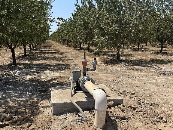 Water: Located in Lindmore Irrigation District and receives deliveries. Water to the property is provided by an on-site well. In 2018, a new 60 hp pump was installed, along with new bowls and electrical panel. Trees are irrigated via a pressure system with sand media filters and 25 HP booster pump. 2016 plantings have both fan-jet and dual drip lines installed. 2018 plantings have fan-jets installed with room to add dual drip lines as trees mature. Property is within East Kaweah GSA.