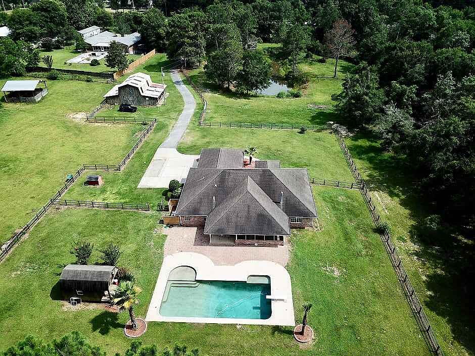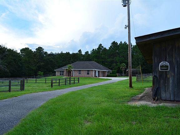 Hold your horses!!! You've got to see this one!! Very rare find!! Live in the country and be close to downtown Foley and minutes to the Beach!! As you drive up the winding paved driveway around the pond and past the large Barn to the beautiful brick home with three huge bedrooms along with the garage converted into a large bedroom suite to total four bedrooms with three Baths. Large open floorplan, kitchen, dining and living, perfect for entertaining family and friends! New Appliances! The property borders the small creek of the Bon Secour River. Large Barn and 4 horse stalls. Fenced pasture. Imagine having horses in the field and ducks in the pond and your favorite beverage by the wonderful pool, it doesn't get any better than this!