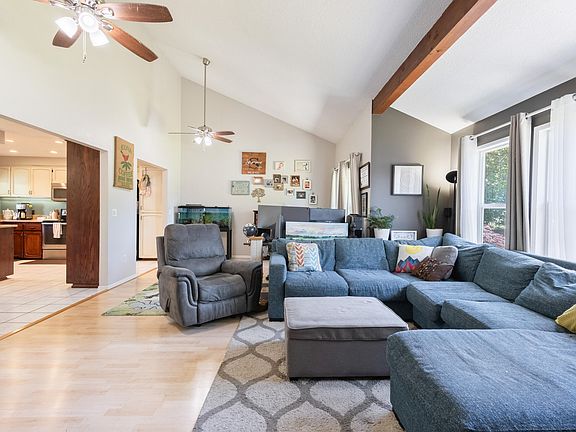 An exceptional chance awaits! Discover this move-in ready 1-level home, boasting vaulted ceilings and exposed beams. The spacious kitchen features quartz and stainless appliances, with ample countertop bar seating and eating nook. Outside, a fenced backyard with storage shed and spacious covered patio offers an ideal retreat for relaxation, gardening, or entertaining. Enjoy recents updates like A/C and a Newer Roof! Don't miss out on this opportunity!