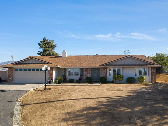 Welcome to this beautiful 3 Bedroom, 2.5 Bath home in the hills of Hesperia! Gorgeous mountain and city views from this well-maintained home! Enter through double doors and take in the beautiful upgraded home featuring waterproof vinyl flooring in living, dining, kitchen and all bedrooms! Many beautiful features and pride of ownership shows in all the meticulous details. New paint on exterior and interior in 2019. This home features stainless steel appliances in the kitchen, fireplace in living room, central air and heating, also has an evaporator cooler. A fabulous floor plan featuring spacious bedrooms in this stunning one story! Lots of storage space throughout this home as well as the garage. French doors lead you to amazing back yard, featuring a covered patio with lighted ceiling fans, storage shed, and an in-ground pool! Access from the pool to a shower area in main bedroom. While there is a Jacuzzi on property, not currently operational. Property is on a lot that is almost a half acre, you will really enjoy the views and the fabulous layout of this property! Many beautiful features to this one-story gem! Don't miss out on this fantastic opportunity, this property won't last long! Buyer to verify all information.