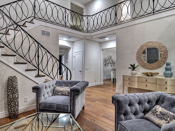 Chic elegance in a warm family home best describes this property. Move right in to this stunning home in Crystalaire in the coveted gated Seacliff Community. With custom finishes and exceptional on-trend design from top to bottom, this home is turn-key. Situated on the greenbelt, this property showcases beautifully updated décor, floors, built-ins and a gorgeous entertainer's backyard, built-in BBQ/Bar and lush foliage surrounding the grounds. The home boasts an ideal floor plan with a main floor bedroom and full bath, formal dining with storage, a formal living area featuring ultra high ceilings, and a completely remodeled kitchen/family room. Upstairs showcases a gorgeous master retreat with a custom finished closet and spacious bath with his/her vanities and soaker tub. The second floor also features 3 added guest bedrooms (one currently used as a home gym). This house overflows with tasteful and distinct elements of design, creating a highly functional yet comfortable home. The house is conveniently close to the community pool and spa, walking distance to shops, restaurants and award winning schools.