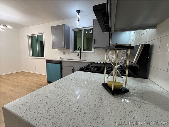 Come see this beautiful house, move in ready, 3 bedroom and 1.5 bathrooms and 2 car garage. Perfectly located with easy access to Hwy I-44 and just 15 minutes from Tulsa Airport and Downtown. Close to major stores and casino entertainment. This cozy home features a newly remodeled kitchen and bathrooms, new laminate, new Central A/C, New Windows, kitchen quartz countertop with a beautiful waterfall. Dishwasher and range/oven are included. Enjoy a nice patio and conventional floor plan. This home is ready for you. Schedule your tour today. Seller/Agent