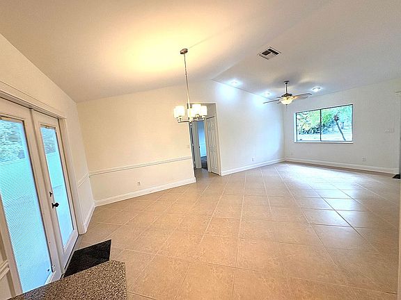 Great opportunity! Nice 3 bedroom 2 Bathroom home with Vaulted Ceilings in San Carlos Park now available! 2 Car Garage with workbench area. Bright and Open Family and Dining space area with Vaulted Ceilings, Diagonal Tile Flooring and Double Doors to Patio! Kitchen features newer appliances which includes Refrigerator, Dishwasher, Range and Microwave. Master Bedroom features Vaulted Ceiling and Walk In Closet. Master Bathroom new vanity and lights with Tiled Stand In Shower with Sliding Doors. Guest Bathroom has tub and shower combo with new vanity and light. Ceiling Fans throughout the home! Inside Laundry Room with Washer and Dryer Hookup. Home has back Patio and private back yard. Close to Gulf Coast Town Center and close to I-75. Don't miss out on this lovely home. Call Tom