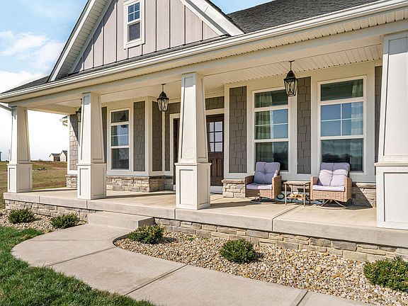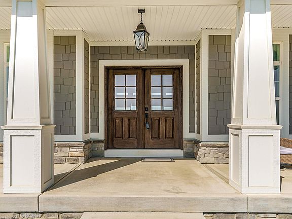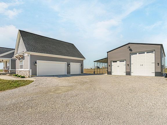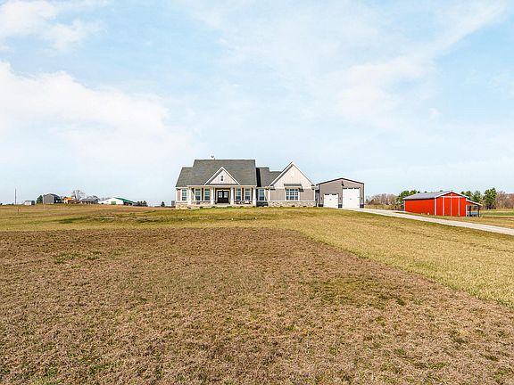 Nestled on 5.09 acres, this Diyanni custom-built home blends luxury, comfort, and functionality. The open floor plan features a wood-burning fireplace, wood ceiling beams, and a wall of windows with custom smart blinds. Enjoy outdoor living on the front and back porches or the new composite deck (2024) with built-in benches and a hot tub. The chef's kitchen offers granite countertops, GE Monogram appliances, farmhouse sink, a gas range, and a designer hood. The master suite includes a walk-in shower and expansive closet. The finished basement (2024) has a bedroom, spa-like bath, office, bar, and game room. A new 30x50 outbuilding (2023) offers space for vehicles, boats, and RVs. The 3-car attached garage includes insulation and epoxy floors. Schedule your showing today!