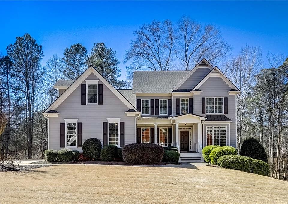 Well-maintained Executive Home in sought-after West Cobb! Smart technology wired for On-Q, new carpet, new water heater, new comfort-height bath fixtures, and a newer roof make this lovely home move-in ready for your personal touch. Designed with an open layout, the main level promotes a smooth flow, making it perfect for hosting and everyday use. The kitchen features warm cabinetry, complementing granite countertops, a gas cooktop, double wall oven, microwave, prep island, and a butler's pantry leading to the formal dining room. The impressive architectural design of the two-story family room showcases two-tiered windows that grace the room with natural light. A gas fireplace serves as the family room's focal point, providing warmth and comfort. An oversized main-level Primary Suite features a sitting area and spa-like bath with a granite dual vanity incorporating a dressing vanity, glass & tile shower, soaking tub, and a spacious walk-in closet for all your wardrobe needs. A powder room and flex room off the foyer complete the main level. Upstairs features a 17x30 family room, a private guest ensuite, and two additional bedrooms sharing an updated bath. The unfinished terrace level opens the opportunity to personalize for future expansion with a stubbed bath. Plenty of storage room in the two-car garage, equipped with a Tesla charger. Beautiful curb appeal with an established landscape, a peaceful & private backyard overlooking a wooded backdrop & Olde England Lake. Excellent location within minutes to Allatoona High, restaurants & retailers of Seven Hills Connector or Kennesaw's Cobb Parkway!