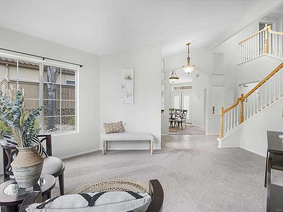 Call this beautiful hillside home in the community of Kent Ranch yours! This multi-level floor plan is located at the top of the Community with no homes directly behind it. 4 BR/ 2.5 BA, Formal dining & Living room, with an updated kitchen open to a large Family RM complete with a fireplace with gas logs. Primary suite is on its own level with newly updated gorgeous bath & large walk in closet. 3 more Bedrooms and 1 updated bathroom is located on the top level. Interior & Exterior recently painted. Artificial turf in backyard with a large covered patio. Owned solar panels. New roof in 2019. Community walking trails, park & Tot Lot. Close to schools, shopping and easy access to the 78 & 15 freeways. Low HOA! Artificial turf in backyard with a large covered patio. Owned solar panels. New roof in 2019. Community walking trails, Playground with new equipment & Tot Lot. Close to schools, shopping and easy access to the 78 & 15 freeways. Low HOA! Information is deemed reliable, but buyer and buyers agent to verify all info.