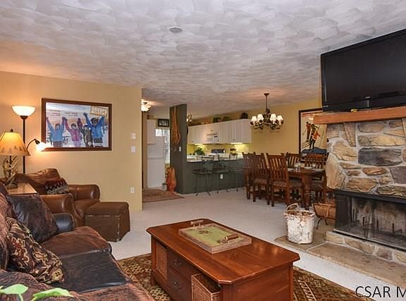 Watch the seasons unfold in this fantastic 3 story, 3 bedroom, 3.5 bath townhome here at Hidden Valley Resort. Location is excellent with the property overlooking Forbes State Forest and a short walk to the big swimming pool, basketball court and playground in South Ridge. This property is in immaculate condition, has open living area with stone fireplace, fresh paint, 2 large decks off the back, massive windows in master suite to enjoy the views, remodeled entry vestibule with ski storage and heated floors, selling fully furnished and more!