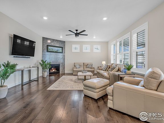 Huge Price Decrease! + Brand new Owens Corning Duration Storm Class 4 Impact Resistant roof installed this week. Roof has a transferable warranty to the new owner. Make this Desirable Compass home YOURS! Location is everything! 15 min to Boulder, 45 min to Fort Collins and Denver. Very convenient to DIA. Skiers only 1.5 hours to world class resorts. This 5 bed 4.5 bath home has everything you are looking for. Walk inside and embrace the open living space with a main floor office, and expansive dining room. Butler's pantry is larger than most plus has an additional office nook. Enjoy cooking for family and friends in your gourmet kitchen with large center island, granite countertops, double oven and cabinets and drawers with soft close features. Family room has a gas fireplace. Step out to your cozy patio with infrared heater to keep you warm on cool nights. Patio has privacy blinds on all sides, and is covered. Customized plantation shutters throughout the house. Upper level hosts another large entertainment room for movie or game nights. Expansive Master suite, with 5 piece master bath & large walk in closet. Bedrooms 2 &3 share a Jack and JIll bathroom. 4th bedroom has a private bathroom. Laundry is on the upper level for your convenience. Full finished basement with guest suite including a custom shower with rain head nozzle, +walk in closet. Gorgeous bar area including wet bar with full refrigerator. Basement also includes a game area (pool table included). Watch your favorite shows in the theatre area with the electric fireplace. Hidden storage room with 1 freezer included. Home has an extra special feature. Reach out to listing agent to learn more. Radon mitigation system. Outside features include covered front porch, 3 car garage, and professionally landscaped yard. Check out the new park that is going in this neighborhood. (see a rendering of the park in the photos)