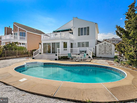 Introducing your dream waterfront retreat on Mill Creek Road with unparalleled views, an in-ground pool, and natural protection thanks to Thorofare Island to keep your boat safe! Situated on the easternmost edge of Beach Haven West, this home offers a commanding vista of the bay and the added security of Thorofare Island. This inviting three-bedroom, two-bathroom home is poised for summer enjoyment, boasting a private pool, dock, boat lifts, and a charming sandy beach along the bulkhead. The main level welcomes you with a foyer, full bath, two bedrooms, a spacious living room, dining area, kitchen, laundry, and utility closet. The kitchen features elegant granite countertops, ample storage, and captivating water views. The dining area is bathed in natural light with wall-to-wall windows, highlighting the backyard, pool, and bay views. The second floor offers a large second living area with a gas fireplace, second kitchen space, dining room, the primary bedroom and a full bath. A large deck facing the bay can be accessed from both the living area and the primary bedroom, where panoramic vistas of the bay, Thorofare Island, and Atlantic City await. With some simple changes, the second floor could easily be converted to accommodate a fourth bedroom and an additional bathroom. The large lot size provides plenty of parking and plenty of space for entertaining on the bayfront patio. The home is being offered partially furnished. A new salt water pool motor will be installed prior to Closing. American Home Shield Warranty in place - Buyer can take over warranty.