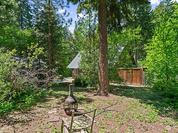 Moonlight Serenade! This PERMITTED VACATION RENTAL chalet is nestled on a tranquil 1-acre lot and comes fully furnished, offering a turnkey experience. The 2 bed, 2 ba cabin offers an open concept main floor with a cozy river rock gas fireplace, and relaxing hot tub area with privacy walls. The large exterior patio is ideal for outdoor entertaining and the spacious detached garage offers ample storage and convenient drive through access. Pet owners will appreciate the spacious 30x12 dog kennel. Freshly painted interior and newly refinished entry deck add to the home's appeal. Enjoy walking trails right from the cabin. Conveniently located 20 minutes from Stevens Pass Ski Resort and downtown Leavenworth, and just minutes from Lake Wenatchee.