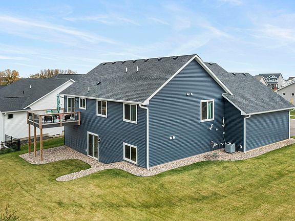 Awesome corner lot with pond views, 2024 built, just like new and move-in ready! Don’t wait to build, this fabulous home is just like new and only available due to relocation. Modern, stylish with many upgrades and expansive corner lot showcasing serene pond views from the low-maintenance deck! Don’t wait to build, this fabulous home is just like new and only available due to relocation. Charming Craftsman-Style woodwork and doors throughout. Located near Highview Elementary parks/trails/ fields. Beautifully designed home offers timeless character with modern functionality. Towering vaulted ceilings and spacious, open foyer. Warm wood cabinetry, detailed millwork, and quality finishes create an inviting atmosphere. Spacious 5-bedroom floor plan w/ a Primary Suite, 3 bedrooms on the one level. Gorgeous quartz countertops, a center island with breakfast bar seating, and stainless-steel appliances that complement the home’s classic aesthetic. Ample windows and thoughtful lighting bring in natural warmth and brightness. Neutral paint and flooring, sprinkler system, water softener, and oversized 3-car garage. Nestled in a prime Lakeville neighborhood known for its excellent schools, parks, and community charm. Exciting future amenities at Grand Prairie Park—just a short walk away—will include a splash pad, pickleball courts, playground, and more, creating the perfect neighborhood retreat with NO HOA fees. Short drive to downtown Lakeville shops/restaurants and more. This growing area is a perfect place to call home!