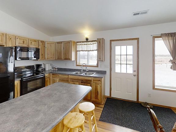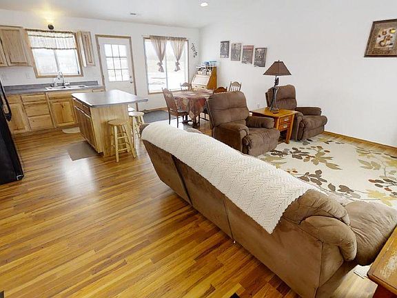 Easy one level living with 4 bedrooms and 2 bath. New 2 stall garage built last Summer. Open concept floor plan with infloor heat. Wide open spaces with room to roam and a view that overlooks the surrounding 15 acres. Several trees have been planted and berry bushes are already producing. This property is located 3 miles from Veteran's park making it a quick run to downtown fun.