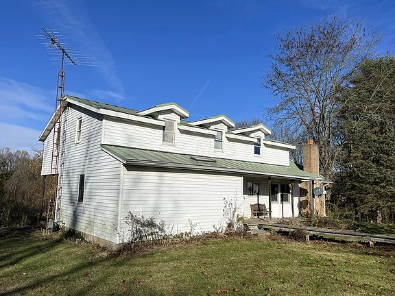 18599 Scott Road. Handyman special! Enjoy all the perks of living in the country without being far from town. Quality built 6 BR 2.5 bath 1 car garage home on 7.5wooded acres. Prime hunting area! Detached 48'x45' man cave/garage including a bar, waterfall, special room just for painting vehicles or bikes! Detached barnwith gravel floor which is perfect for storing mowers and other garage items. Inside the home enjoy a 1st floor master suite with a walk-in closet. Additional bedroomattached to a half bath, kitchen and living room on the first floor with 4 bedrooms and family room upstairs. Unfinished basement which currently has a garage doorcould be finished into living space, already plumbed for a third full bath. Mineral Rights do not convey.