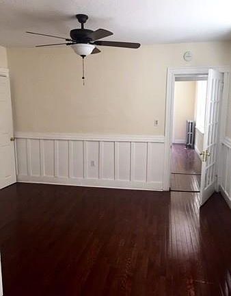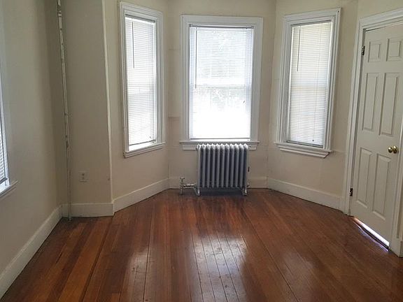 Truly Great Value - three bedroom, one and one half bath attached townhouse with THREE car parking in the driveway! Hardwood floors throughout, living and dining rooms plus an eat-in-kitchen, with laundry and storage in the basement and a big shared yard. Owners are open to renting to tenants with a dog or a cat. Easy access to the Mass Pike, bus lines, stores, and restaurants. This place isn't fancy but it's tough to find a better deal