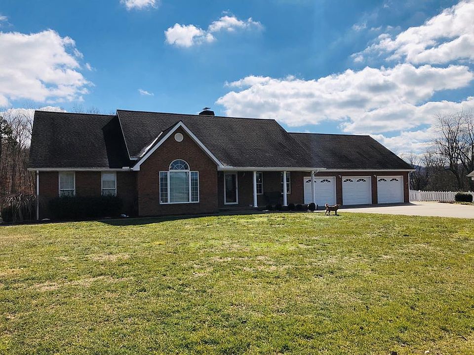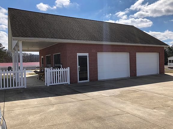 Brick 1 story on a full basement situated on 5+ acres with a pond & an attached 3 car garage. The foyer opens to dining room and living room with gas log fireplace and a separate electric fireplace. Kitchen has a bar and desk area, skylight, stainless steel appliances (2015), granite counters (2015) and opens to the sunroom which leads to the back patio and 16x36 inground pool area. All three bedrooms have large closets and the master has a walk-in with built in shelving. All 3 bathrooms have granite counters. Rec Room features a bar with wash sink and mini fridge, reclining sofas and projector equipment. Laundry has folding counter & built in shelves for extra storage & is located off the kitchen. Surround sound in/outside. All mounted TV's stay. 2 large outbuildings (30x60 enclosed & 54x35 open), 2.5 car detached garage (28x38) that is heated and cooled. HVAC 2019, hot water heater 2020. Basement has shelves for storage. Full house generator. Rear of property is fenced.