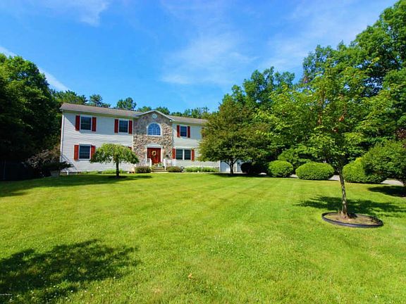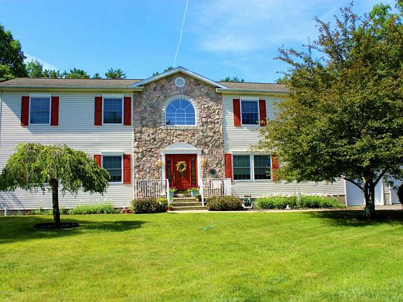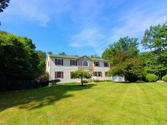 Beautiful Two Story Center Hall Colonial located on a 1 acre corner lot. Relax and enjoy the tranquil setting of the mature trees in the private tree lined backyard with a paver patio and deck for entertaining. 2990 sq ft of living space includes 2 zone heating and air conditioning. Large eat in kitchen has granite counter tops, breakfast bar, pantry, and Bamboo flooring that flows into family room and dining room. Bonus room perfect for home office.Sunken living room with French doors leading to family room. Master bedroom has a private en-suite and walk in closet. Three more spacious bedrooms and full bath completes this gorgeous home.
