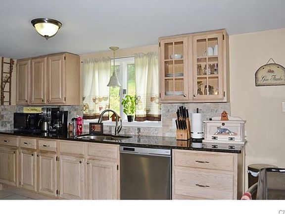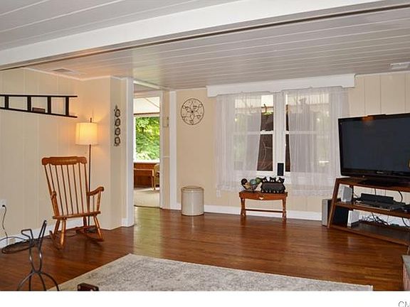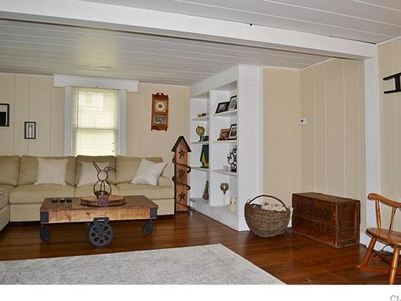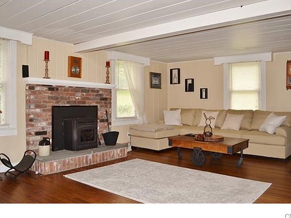 Cape featuring granite counter tops and S/S appliances. Enjoy a peaceful evening in your screened in deck right off the kitchen. Extending out from the deck is a beautiful patio and perfect back yard. Hardwood floors throughout, built in's, pellet stove, exposed beams add charm. Three season heated sun room is great for entertaining. Built-in hutch in the dining room. Bedrooms all feature carpet w/hardwood underneath. 2 additional bedrooms upstairs, one features a dressing room/office area. One car garage that has been transformed into a man cave. Feeling handy? Enjoy your hobbies in the detached shed/workshop/garage, which completes this property. Central air duct-work is in place. Make this house your home today!