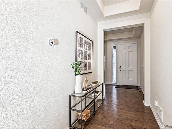 Castle Pines...a slice of heaven where “one level living” never looked so good! Perched on a mid-block lot backing to open space, it couldn’t be a better location! It boasts curb appeal galore with a manicured exterior. Open the door to an extended entryway, 9’ ceilings (10’ in some recessed areas), fresh Dover White interior paint and engineered wood flooring. The main living space is a great room concept with amazing room interaction and maximum light throughout! Easily accommodating multiple furniture pieces, it also has a corner fireplace with a marble surround. The kitchen functions nicely and has an abundance of 42” perimeter maple cabinets with complementary slab granite tops and straight-set backsplash. The curved island faces the living room, has plenty of extra storage and seats three. An upgraded LG InstaView armoire refrigerator, GE gas stove, GE dishwasher, GE microwave and a spacious walk-in pantry round out the kitchen. With direct access to the covered back deck, the dining room easily seats eight and has plenty of space for a buffet. Two sizable secondary bedrooms at the front of the home share a full bathroom with a linen/storage closet. The primary suite is private from the other bedrooms and doesn’t share a wall with the great room. It’s a tranquil space and can host the largest of furniture pieces. All bedrooms are carpeted. The five-piece primary bathroom includes dual sinks, soaking tub, separate shower and a water closet with an incredible “do-everything-for-you” Toto WASHLET bidet. The walk-in closet includes plenty of storage space. The laundry room includes the front-loading washer and dryer. The separate mudroom area with bench and storage, is conveniently located right when entering from the garage. A split staircase leads to the HUGE unfinished basement. A mirror image of the upper level, it already has drywall on the ceiling and is ready for your creativity. Mechanicals are in the ideal place for an incredible finish! Dare to dream!