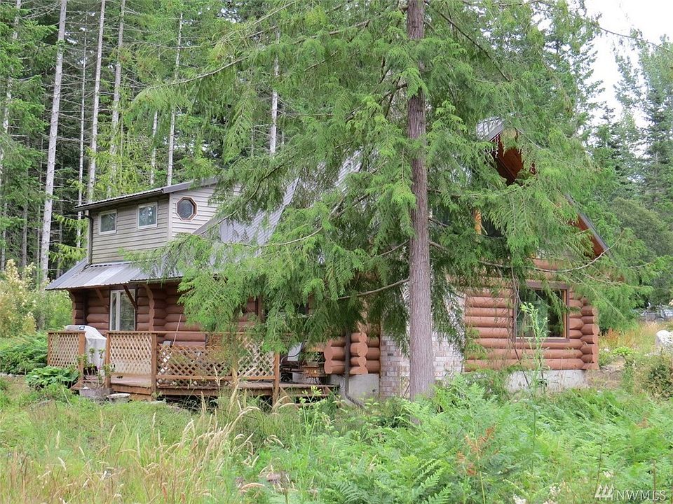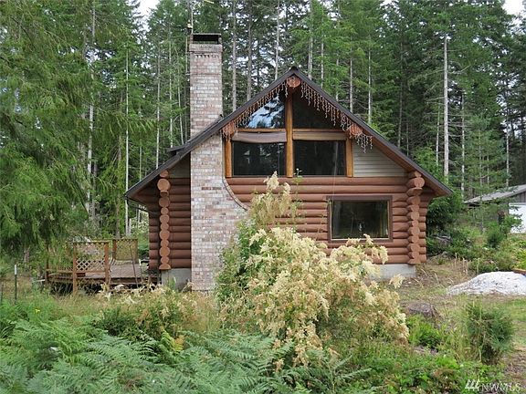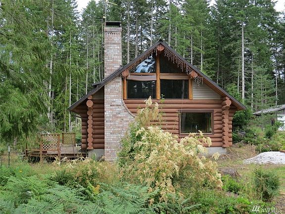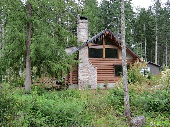 Serene setting with well-built log home that backs up to state DNR land. Oak hardwood flooring in living room and dining area. Lots of light with Southern exposure. Large brick fireplace with freestanding wood stove. Vaulted open beam ceiling. Power, water and septic available for RVs.
