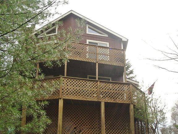 A Perfect Vacation/Rental Home. This Lovely Home Features 3 Bedrooms, 2 Baths, Living Room Fireplace Family Room, Shed, New Kitchen with Granite Counter-tops and 2 Decks to enjoy the amazing view of the Mountains!! This Home is move-in Ready. Private Balcony off the Master Bedroom, Furnishings and Game Tables. Nicely located in a Lake Community with Beach, Tennis and Clubhouse. Close to All Pocono Attractions!!
