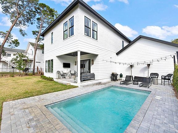 Completed in 2020, this contemporary custom home offers the complete package. Located on a quiet dead-end street, it has an impressive lawned front yard with double driveway leading to an air conditioned two-car garage. A neat covered porch provides a welcome place to relax for morning coffee. The glazed entrance door provides access to the welcoming foyer with cubby area and storage closets that blend into the shiplap, giving the home an admirable introduction. Move into the light, bright living/dining areas anchored by a cozy gas fireplace with a slate surround. It's a generous well-lit space with engineered hardwood floors for everyday living and entertaining. Four stools are lined up at the pristine quartz-topped island for casual dining beneath pendant lighting. Floor-to-ceiling white inset cabinets, quartz counters and a 36-in. Thermador range creates a clean fresh ambiance in the luxury kitchen. Sliding doors create a natural flow to the outdoor living space which includes a brick-paved patio and wall-mounted TV hook-up. The covered terrace overlooks a large lawned yard, 20-ft. pool. The yard is fully fenced and lushly landscaped. Brick pavers continue around to a generous grill area adorned with strings of cafe lighting. Four bedrooms include a first-floor bunk room that easily handles four queen-sized beds plus a substantial play space for youngsters. Stairs wind up to three additional en suite bedrooms including a generous master suite complete with a custom tile bathroom, oversized triple head shower and walk-in closet. The seating nook is an inviting space for reading with dual-aspect windows providing garden views. The additional two guest bedrooms are paired with ensuite baths and walk in showers. With no HOA dues, this stunning home exceeds expectations at every turn. The air-conditioned garage sets this home apart as an excellent rec room as well as a place to store bicycles, beach toys and more. Tasteful custom tile and bespoke lighting and drapery add contemporary interest along with shiplap wall features and gold/brass accents throughout this well-presented home. Most furnishings in the home are negotiable. Beach access is a short walk from the home as well as many casual Blue Mountain Beach eateries.