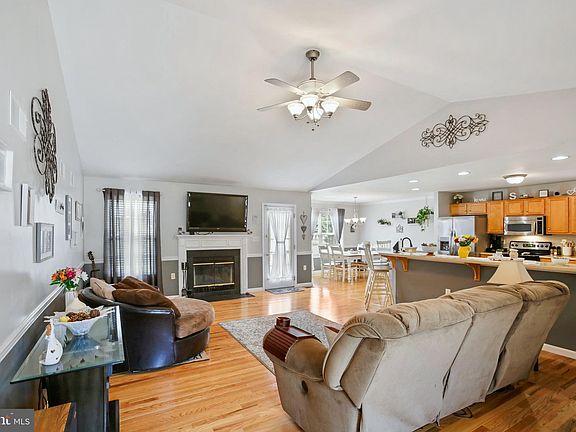 Spacious 5-bedroom, 3-bath ranch-style home set on nearly an acre in the established Federal Hill community in Martinsburg, offering over 2,800 square feet of finished living space across the thoughtfully designed main level with finished lower level that blends comfort, function, and style. Inside, the home welcomes you with a large, light-filled living room—perfect for relaxing or entertaining—flowing seamlessly into a dedicated dining area. The eat-in kitchen features warm wood cabinetry, ample countertop space, a center island with bar seating, and a full suite of appliances, offering both everyday convenience and flexibility for hosting. Adjacent to the kitchen, a cozy family room provides an additional gathering space, complete with a wood burning fireplace for year-round comfort. Four bedrooms are located on the main level, including a generously sized primary suite with a walk-in closet and a private en-suite bath with double vanities, a soaking tub, and separate shower. The three secondary bedrooms offer roomy closets and easy access to a well-appointed full hall bath. A large laundry room with storage cabinetry and a utility sink adds functionality, while wide hallways and neutral finishes throughout contribute to the home’s open, welcoming feel. The lower level is finished with a spacious recreation room, 5th bedroom and full bathroom and a walk out entrance. The roof was replaced in 2024, and a new heat pump system was installed in 2023—offering energy-efficient comfort and peace of mind. Set on a 0.78-acre lot, the backyard offers endless potential for outdoor enjoyment, from gardening to entertaining. The attached 3-car garage and long driveway provide ample parking and storage options. Ideally situated just minutes from shopping, dining, and services in Martinsburg, the home is also close to local attractions such as War Memorial Park, the Martinsburg Roundhouse, and nearby vineyards and trails. Commuters will appreciate the quick access to I-81 and Route 9, as well as proximity to the MARC train station for travel into Northern Virginia or Washington, D.C. Dulles International Airport is approximately an hour away, making regional and international travel convenient. A comfortable and well-cared-for home in a peaceful neighborhood, offering the space and layout to suit a variety of lifestyles.