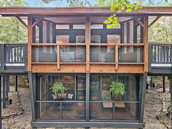 Welcome to your own private oasis in the heart of nature's beauty, less than 5 miles away from the vibrant town of Brevard. This truly is a haven of tranquility and convenience that seamlessly blends with its natural surroundings! Offering three BRs + an extra bonus room, three full baths, an abundance of natural light, two screened porches, two stone fireplaces w/ gas logs, two full kitchens, wraparound deck, garden hot tub, and ample storage You name it!.. Beyond the property's boundaries, awaits a delightful array of shopping, restaurants, stunning waterfalls, and highly convenient medical facilities. This home is not only a retreat but also an investment opportunity. With its exceptional layout, it's perfect for those seeking additional income from an established/successful STR. Alternatively, if you have family members who crave both autonomy and closeness, the entire lower level provides the ideal space for independent living while staying connected. A fantastic opportunity!