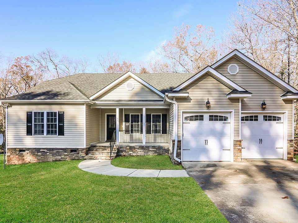 Welcome to this charming 4-bedroom ranch home, located on a spacious .34-acre lot! This beautiful property offers a thoughtfully designed split bedroom plan, providing plenty of privacy and comfort. The bright and airy family room features stunning vaulted ceilings, creating an open and inviting atmosphere. The kitchen includes a cozy breakfast nook, perfect for enjoying your morning coffee, while the separate dining room is ideal for family gatherings and entertaining. With a 2-car garage, there's plenty of space for parking and storage. Don't miss out on this wonderful opportunity to own a home that combines style, space, and convenience. New carpet in bedrooms! Refinished hardwoods in foyer, family, dining & breakfast nook! Tile floors in bathrooms! New vanity sinks! Complete fresh interior paint! New dishwasher & microwave! Septic tank pumped 11/2024. Lot to the right is owned by homeowner 2 lots down.