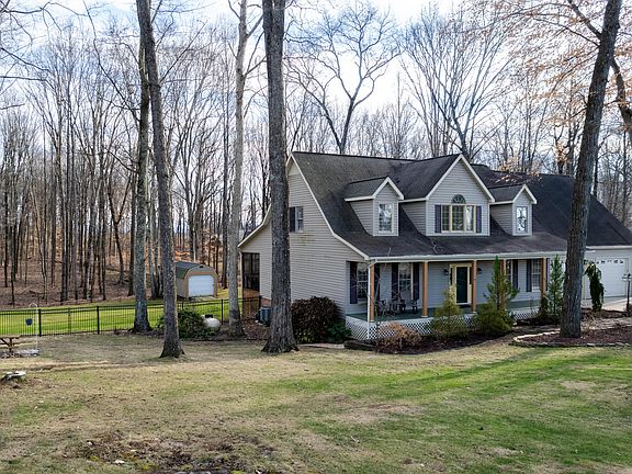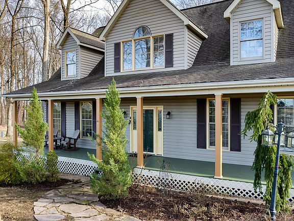 Enjoy this beautiful Cape Cod home backing up to the Crossings Golf Course! A custom built 2 story home conveniently located within minutes of I-81. Nestled among mature trees, the house sits on 3.56 acres. The home features refinished hardwood floors throughout (pictured when completed), 2 newer heat pumps as well as many updates within the past couple of years. Entering this stunning home, you will step into the foyer and just off the hallway there is a half bathroom. The main living space has open floorplan, kitchen with stainless-steel appliances, an eat in breakfast area and the great room with fireplace and vaulted ceilings that has an open balcony to upstairs. The primary bedroom is on the main level is very spacious with walk-in primary closet and a huge primary ensuite. Enjoy gorgeous views off of the screened in back deck that is hot tub capable, running along the full length of the house overlooking the fully fenced backyard. Upstairs you'll find a 2 more bedrooms, full bathroom, and another room that could be used as an office or a 4th bedroom. There is a magnificent bonus room wired for an entertainment system with custom-made built-in. The bar area has a sink, refrigerator and features a live-edge Chestnut bar top along with custom trim work really set this space apart. An attached oversized 2-car garage and concrete driveway make for ample amount of parking. The workshop building in the back yard has electricity. Host family and friend functions with no worries of having enough space. Don't miss out on your opportunity to own this piece of paradise! All information is deemed reliable but should be verified by buyers/buyer's agent.