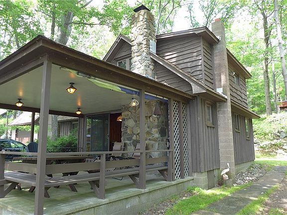 Drenched in southern exposure, 186 Canal Rd is an affordable option for buying a lakefront at Wolf Lake, the premier lake community nestled in the foothills of the Catskill mountains. 4 bedrooms, 1 bath, a kitchen where a renovation was started but unfinished, stone fireplace and very large first floor master bedroom looking out to the lake. Outside there is a very large covered porch leading to a stone patio. Wolf Lake is a member owned community with three bodies of water to enjoy, miles of maintained trails throughout its 1800 acres of private "forever wild" woodlands. All this within 90 min from the GWB.